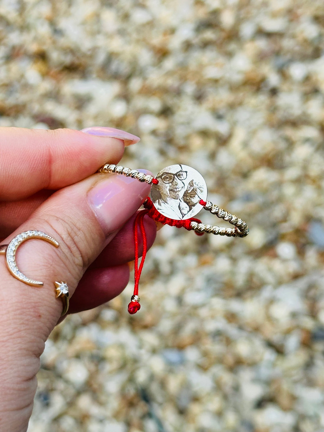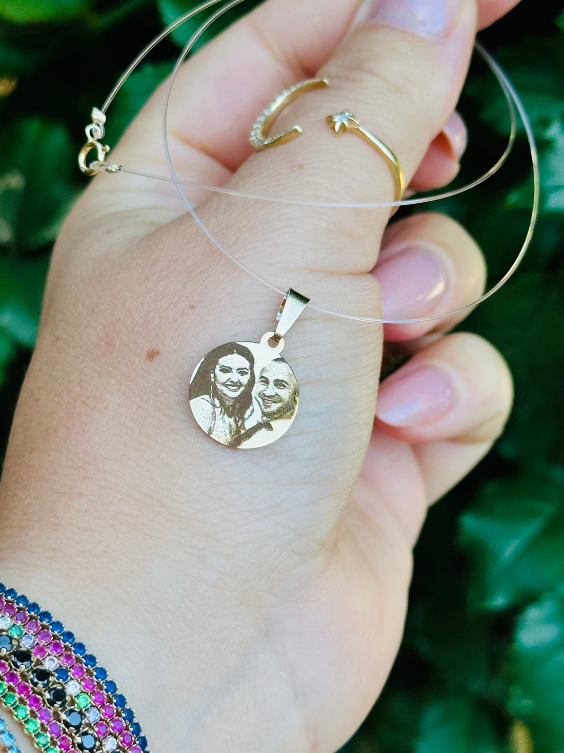 Photo-engraved 15mm coin +10 beads 2.5mm -14k gold