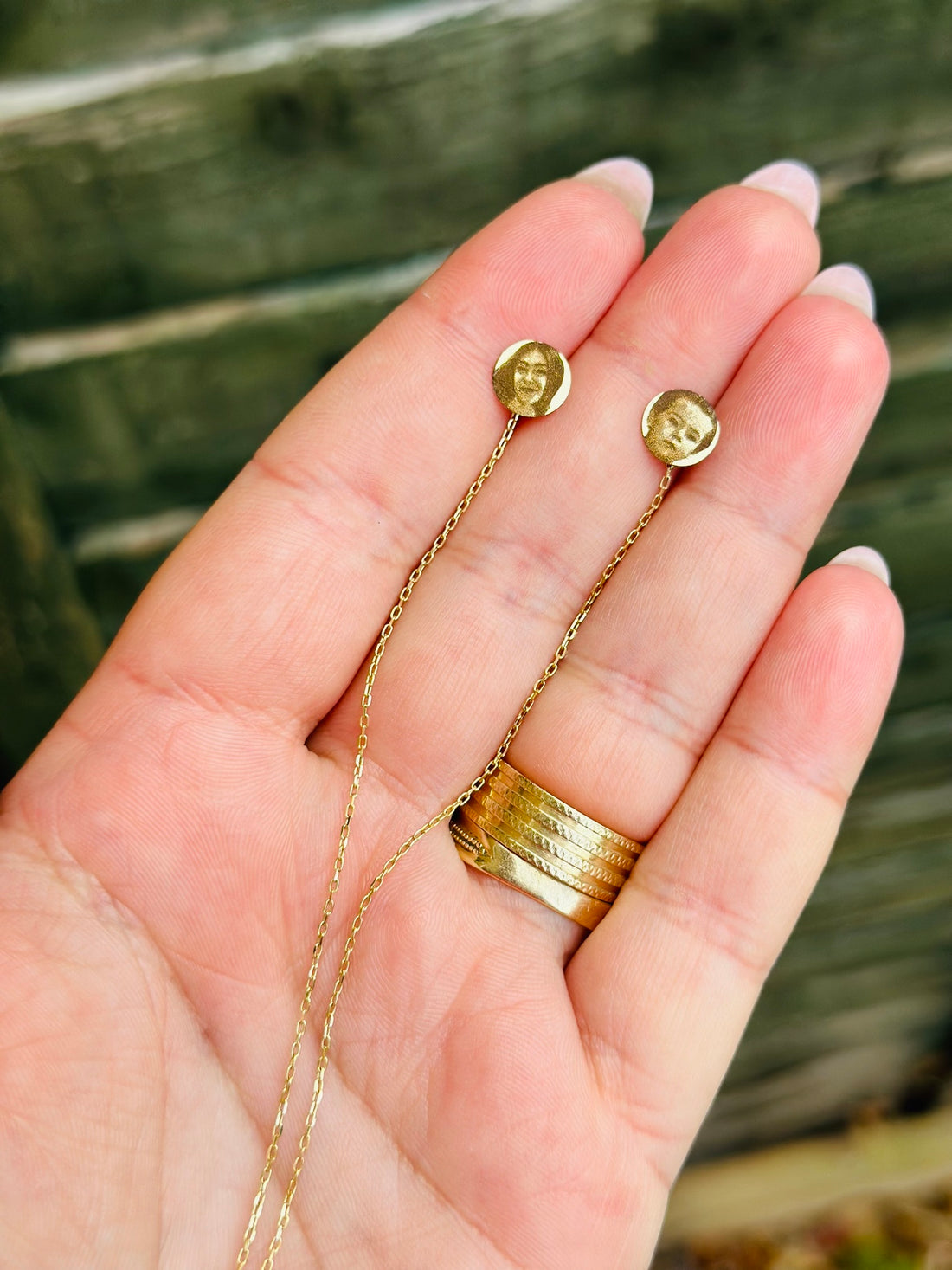 “Always with You” Personalized 10 mm Disc with 15 cm Chain Earrings – Photo Engraved