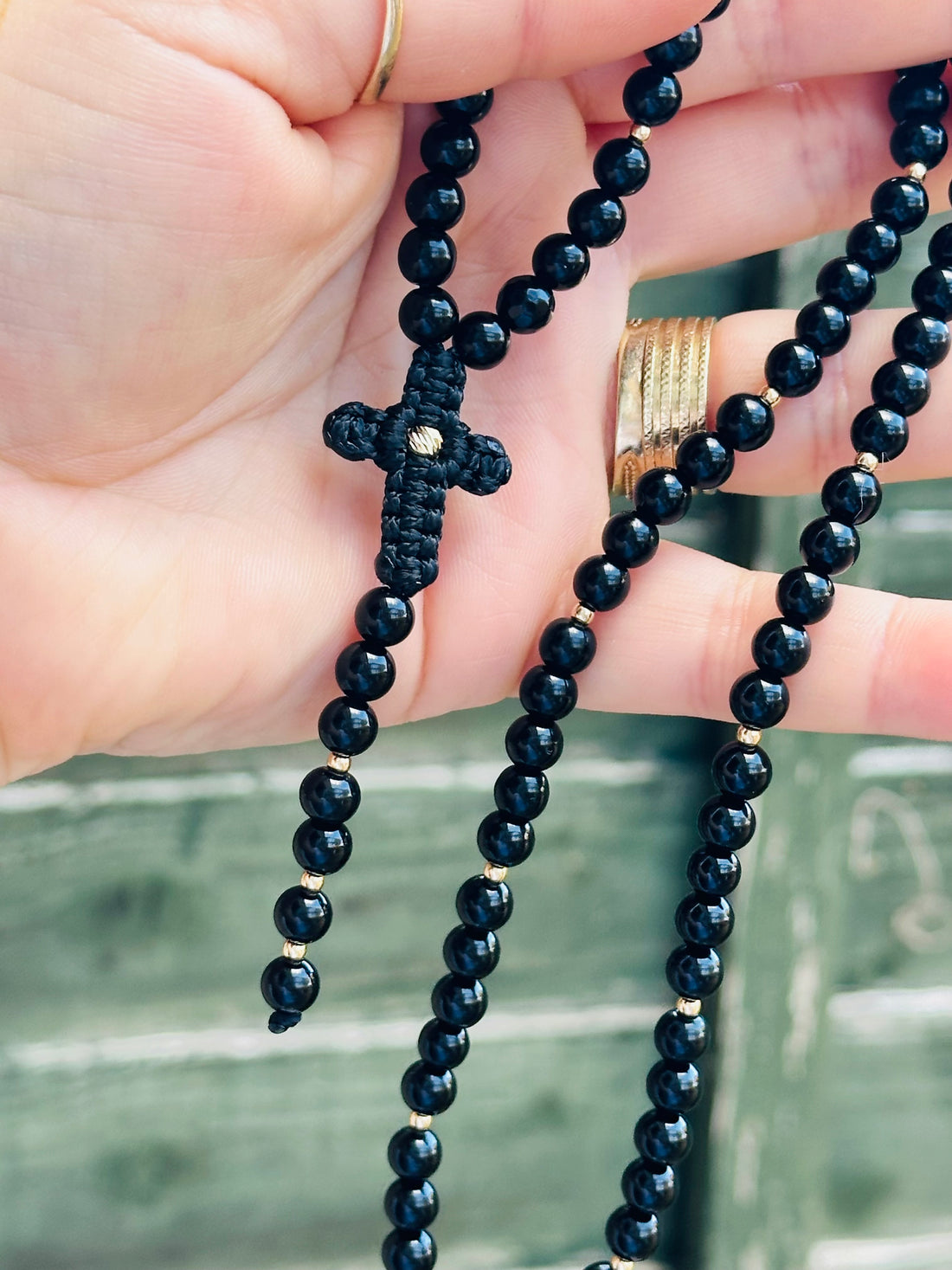 "Holy Father" cross bracelet +6 beads 2.5mm + colored beads - 14ct Gold
