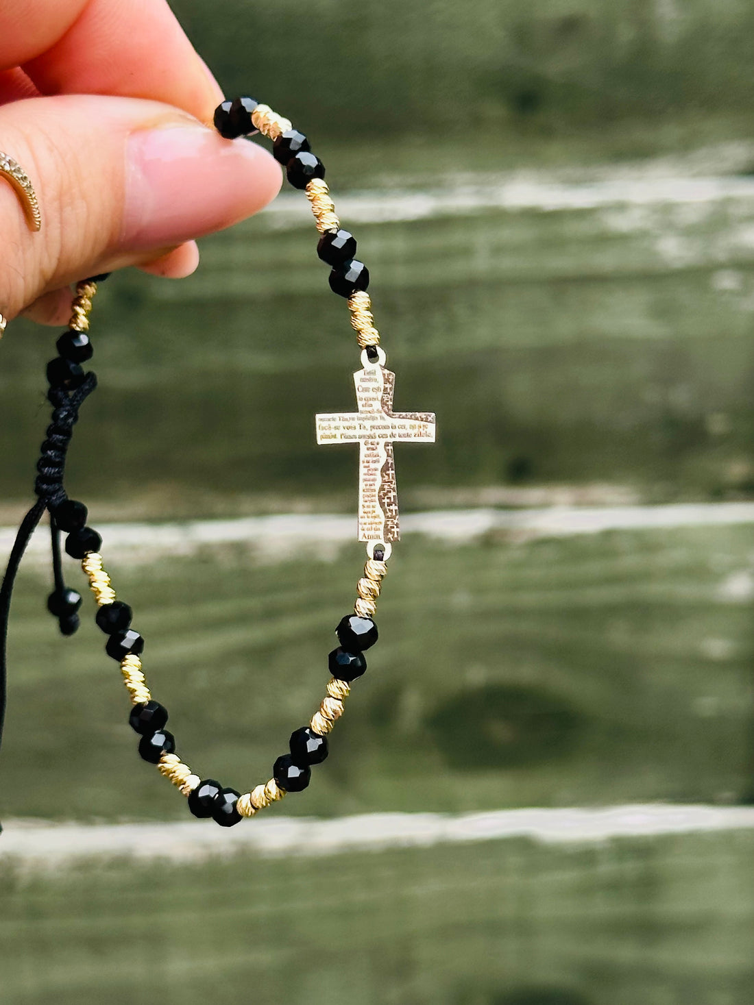 “Holy Father” cross bracelet + 36 beads 2.5mm - 14 K Gold