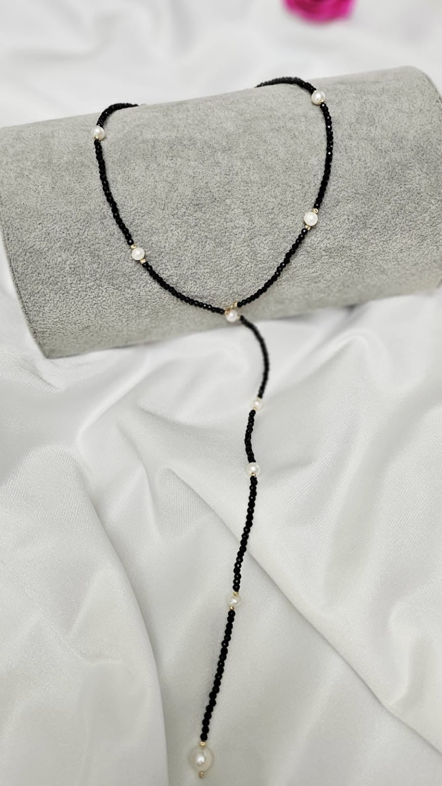 Crystal necklace and pearls + 20 beads 2.5mm -14 ct gold