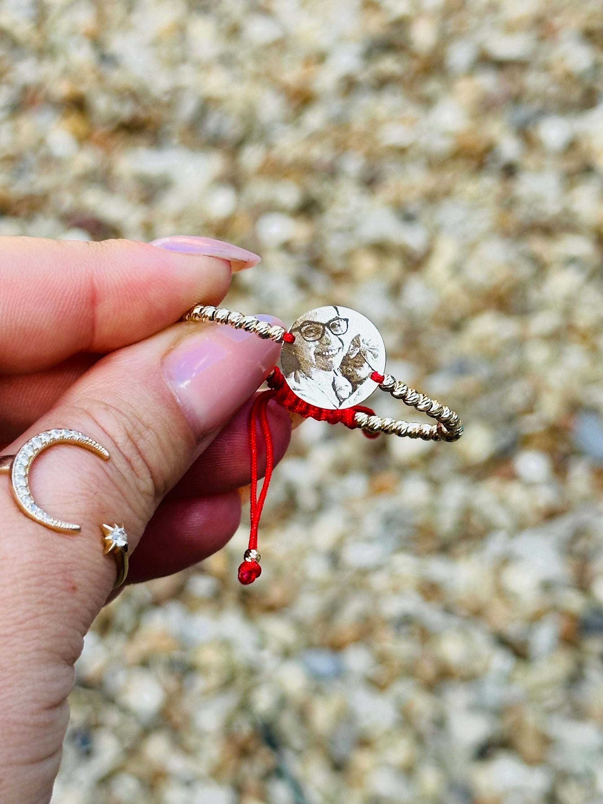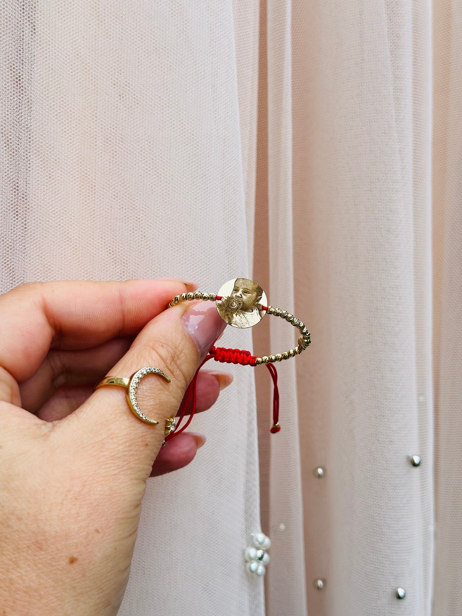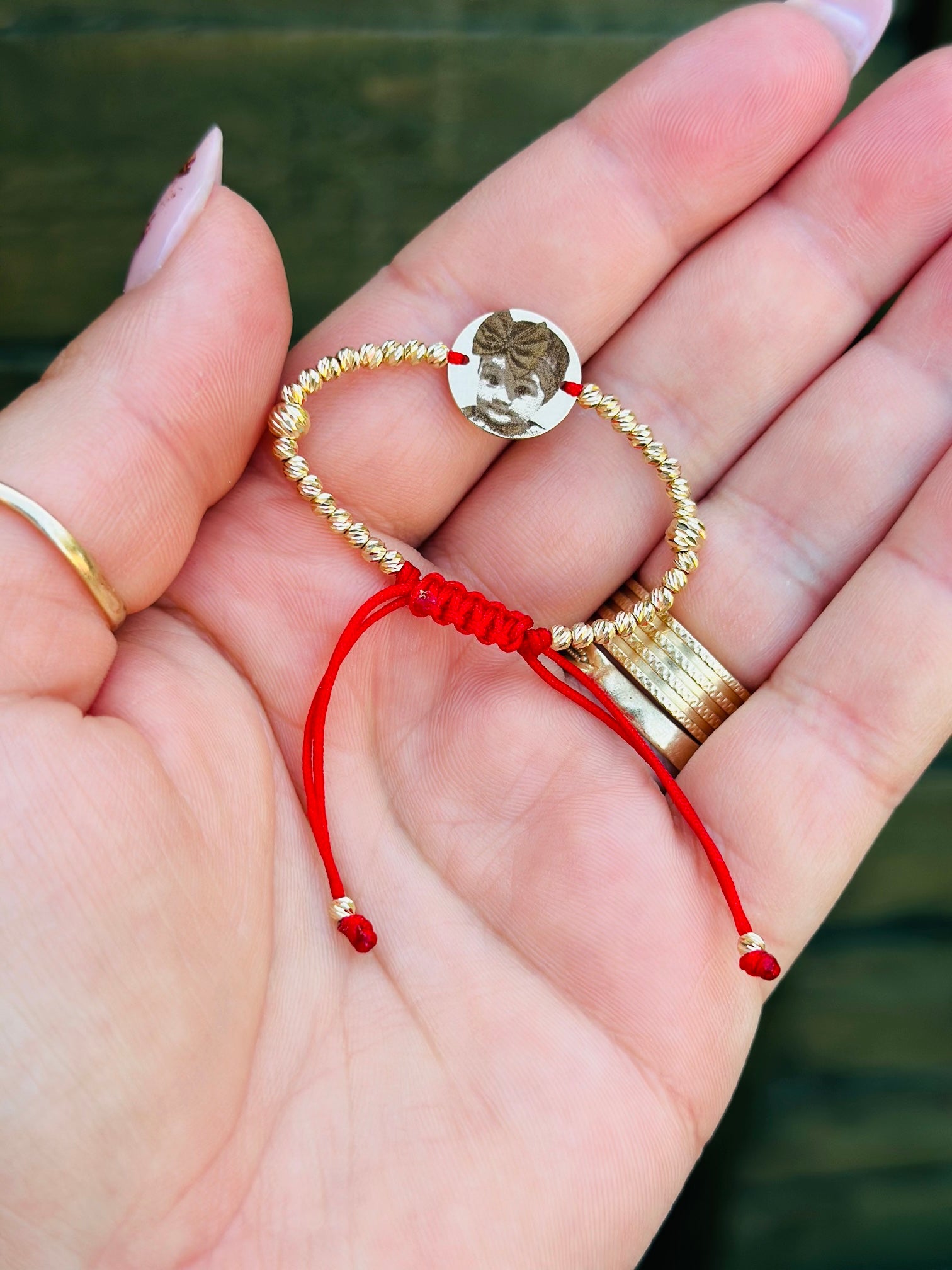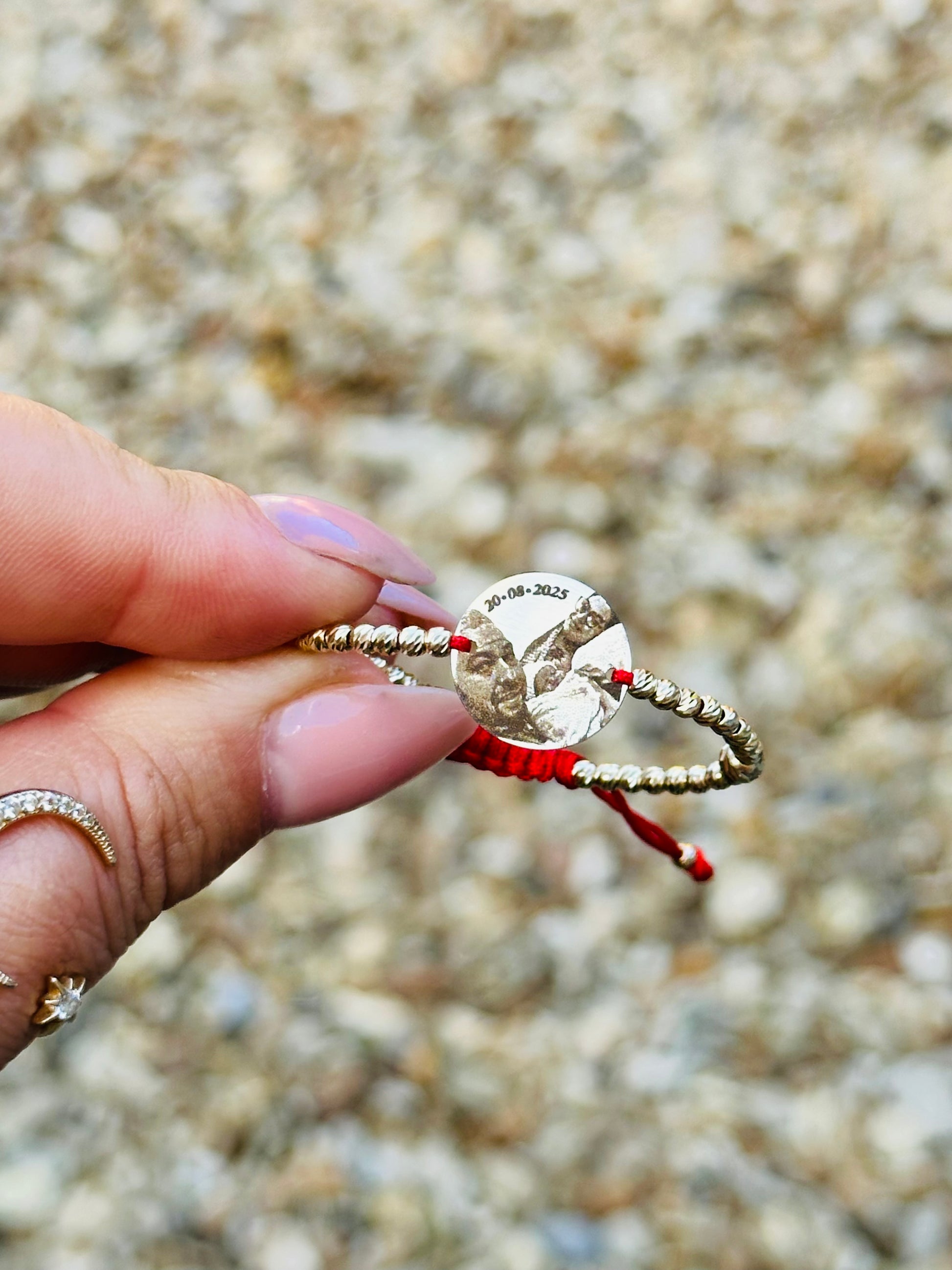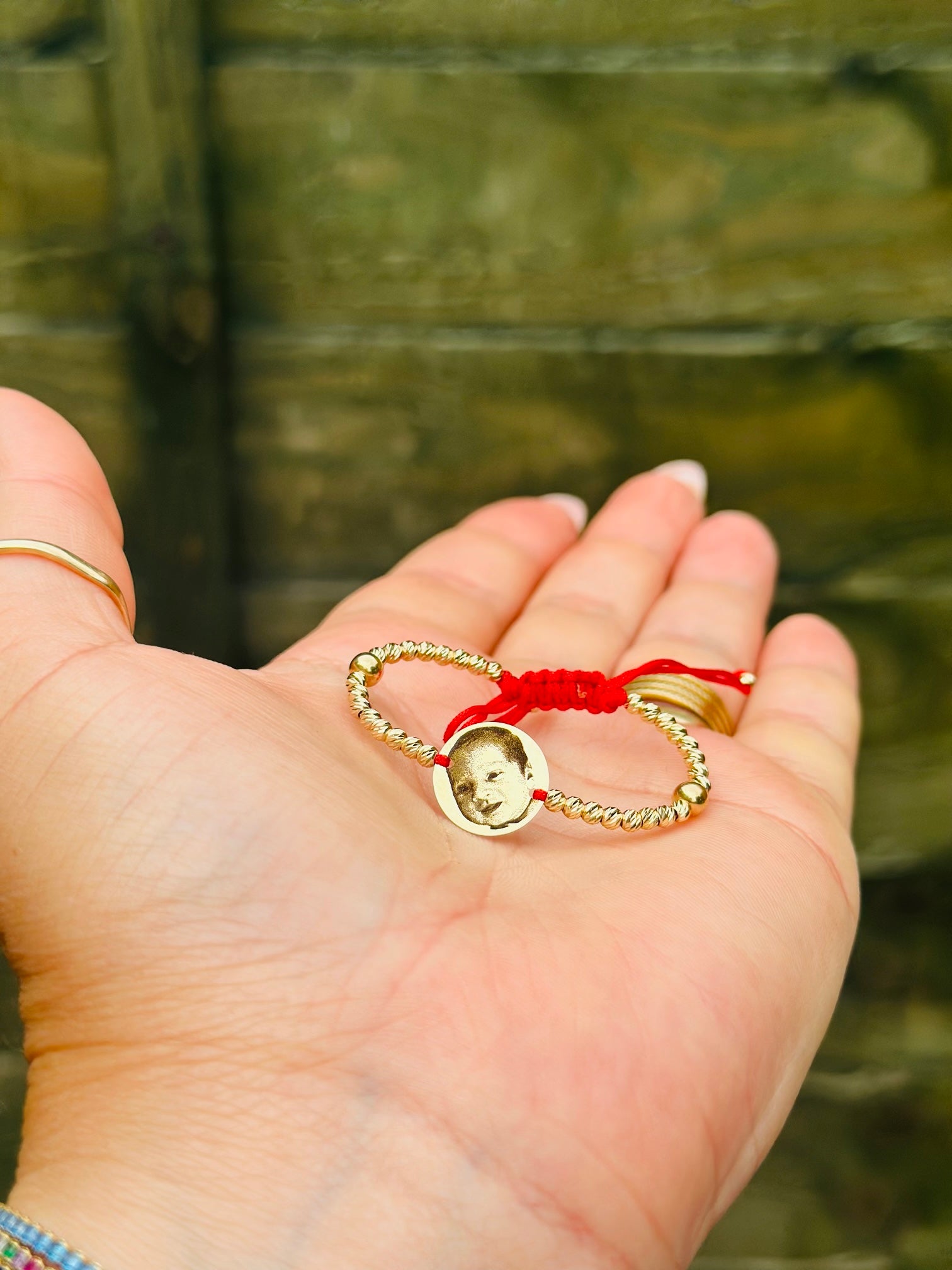 15mm photo coin bracelet +34 beads 2.5mm+2 beads 4mm -14ct gold